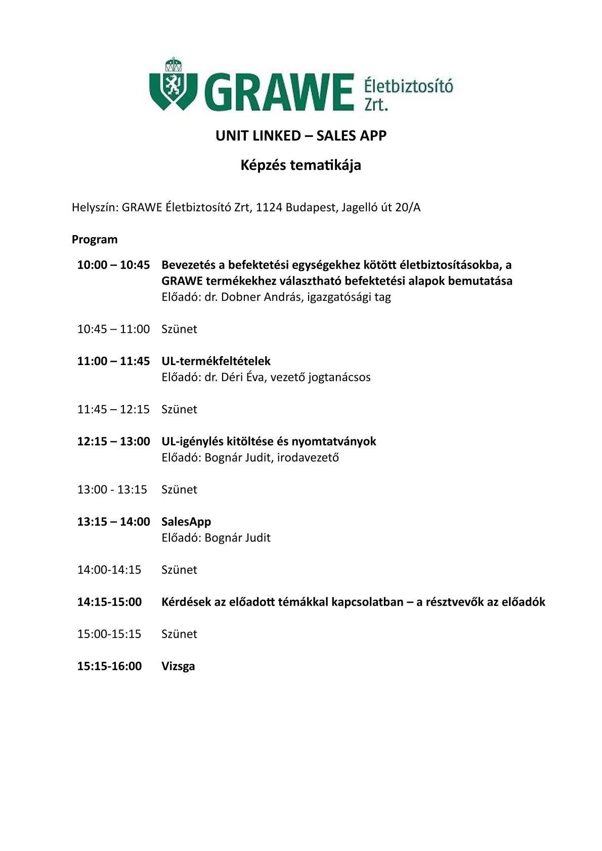 Sales app / Unit-linked oktatás + vizsga 2026.02.17